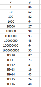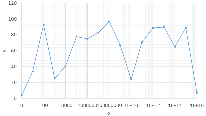 Exemple. Si on trace le jeu de données ci-dessous les premiers point sont « écrasés » sur l’axe des ordonnées.