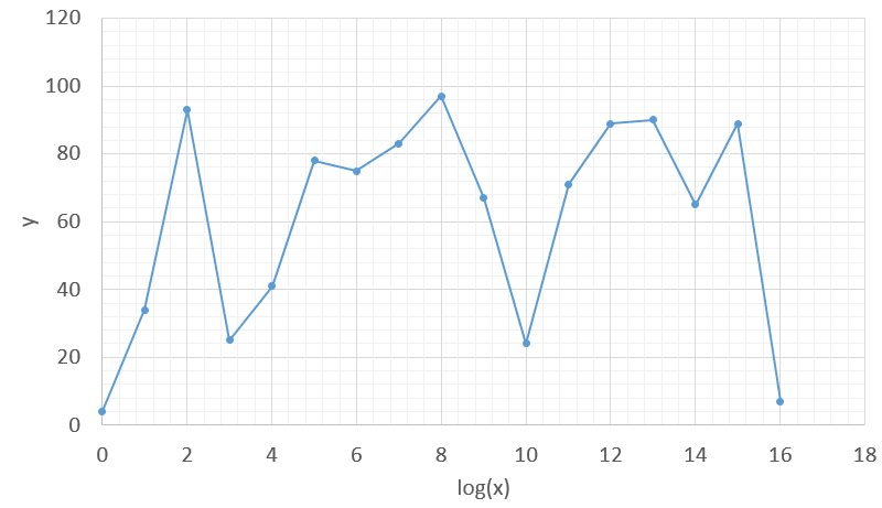 En traçant en abscisse log(x) et non x, les données deviennent bien plus lisibles.